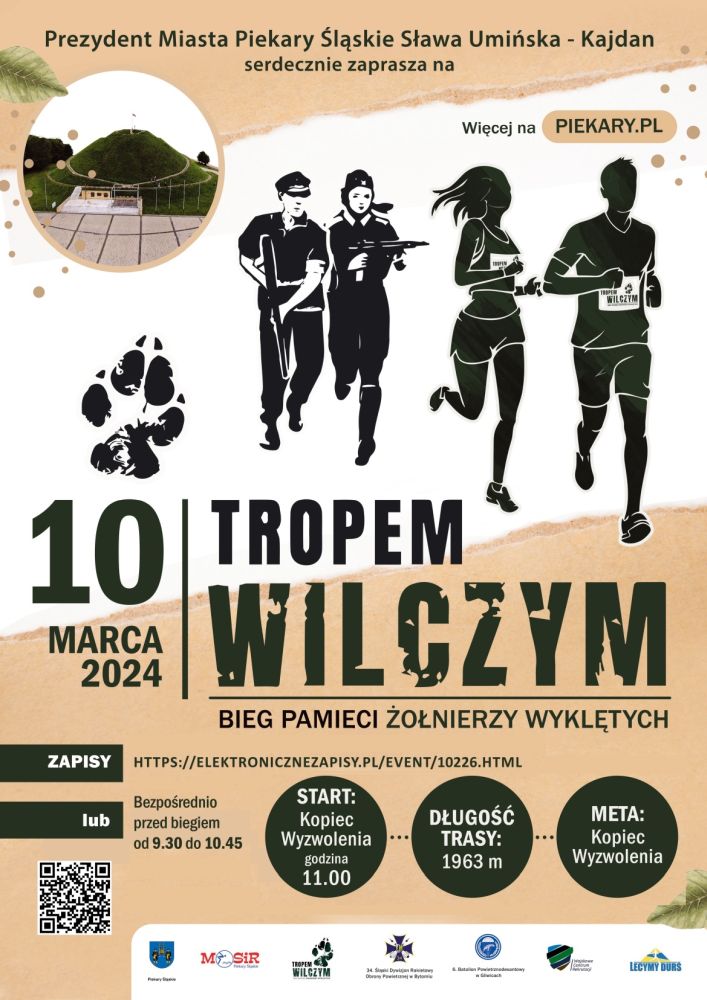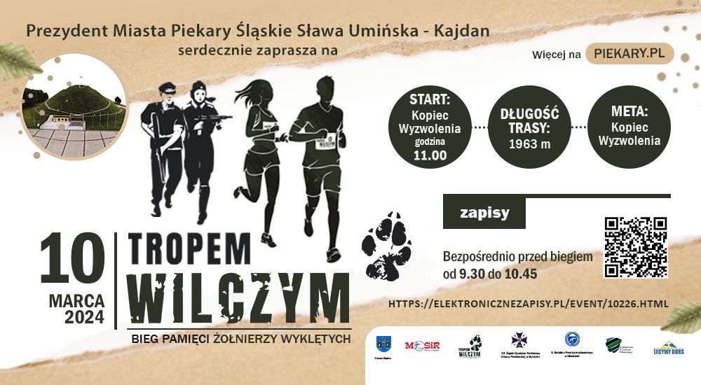 W niedzielę 10 marca 2024 r. pod Kopcem Wyzwolenia zorganizowany zostanie Bieg Tropem Wilczym. Podczas tego wydarzenia, mieszkańcy Piekar Śląskich i okolic pobiegną dla uczczenia pamięci Żołnierzy Wyklętych. Start o godzinie 11.00. Dystans to 1963 metry.