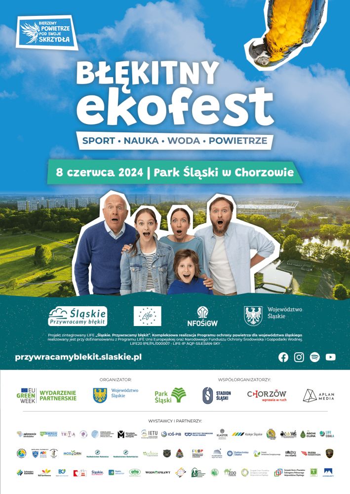 Województwo Śląskie zaprasza 8 czerwca 2024 roku w godz. 11.00 – 19.00 do Parku Śląskim w Chorzowie na piknik rodzinny „Błękitny ekoFest”. Piknik jest Oficjalnym Wydarzeniem Partnerskim Zielonego Tygodnia Unii Europejskiej. Na odwiedzających czekają sektory: sportowy, kulturalny, wystawienniczy i edukacyjny.