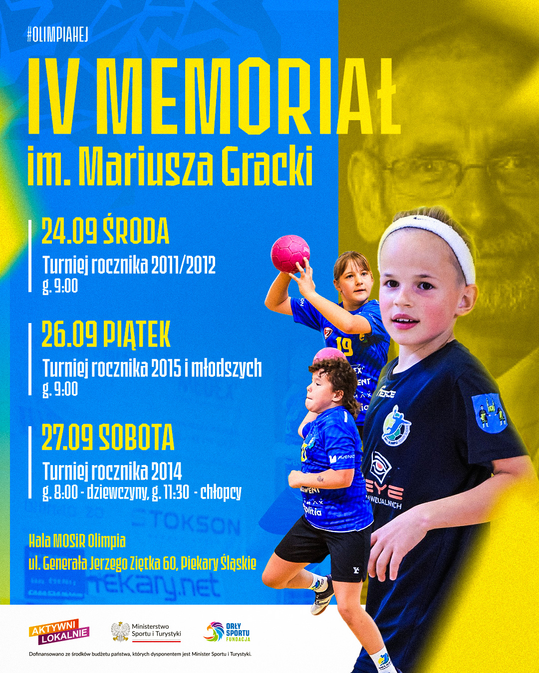 W dniach 25–27 września w Piekarach Śląskich odbędzie się IV Memoriał Piłki Ręcznej im. Mariusza Gracki. Memoriał rozpocznie się w czwartek 25 września od turnieju roczników 2011/2012. W piątek 26 września turniejem najmłodszych z rocznika 2015 oraz sparingiem drużyny z rocznika 2013. Zmagania zakończą się w sobotę 27 września do gry przystąpią dziewczęta i chłopcy z rocznika 2014, a wieczorem o godzinie 19:00 pierwszy zespół MKS Olimpia Medex rozegra mecz ligowy przeciwko SMS ZPRP Kielce II.