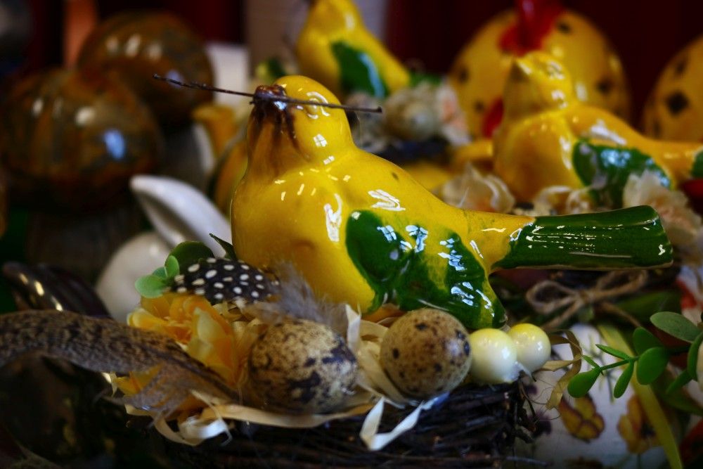 ręcznie malowane jaja i figury świąteczne