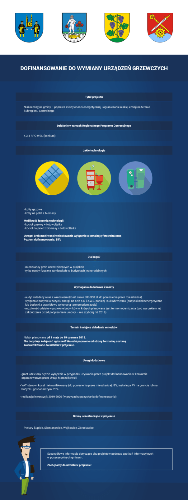 Miasto Piekary Śląskie ogłasza nabór wniosków do udziału w projekcie pn. ”Niskoemisyjne gminy – poprawa efektywności energetycznej i ograniczanie niskiej emisji na terenie Subregionu Centralnego” obejmującego wymianę urządzeń grzewczych. 1 czerwca rusza nabór wniosków.