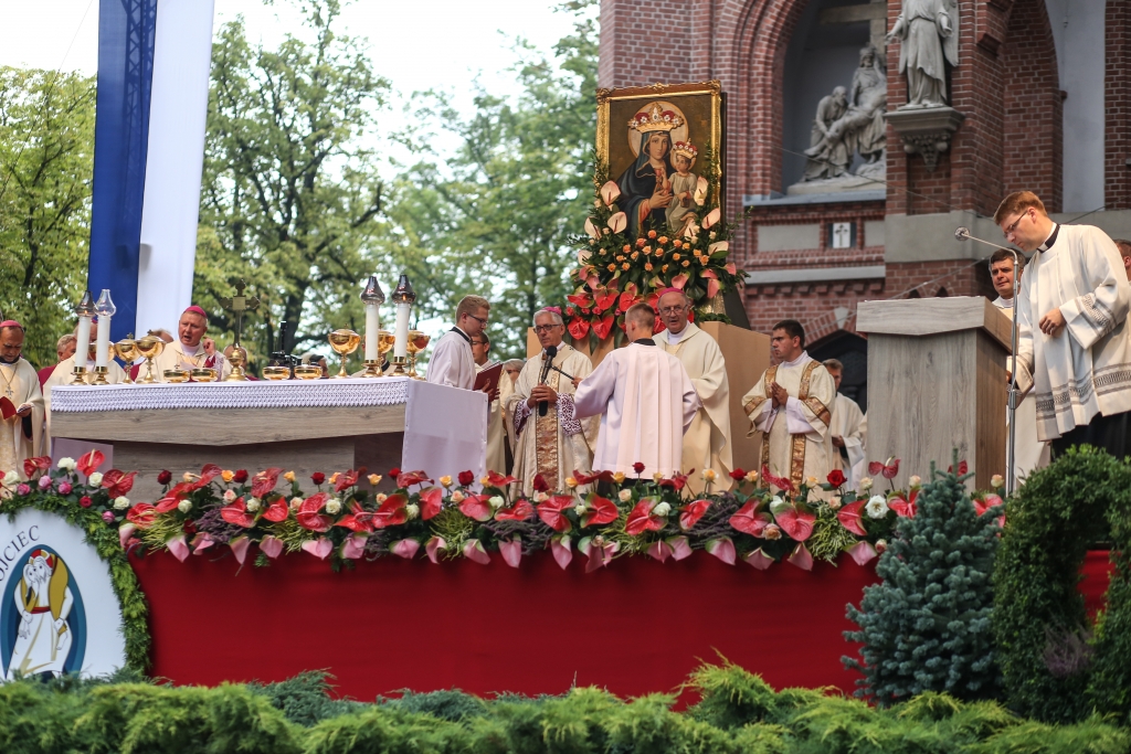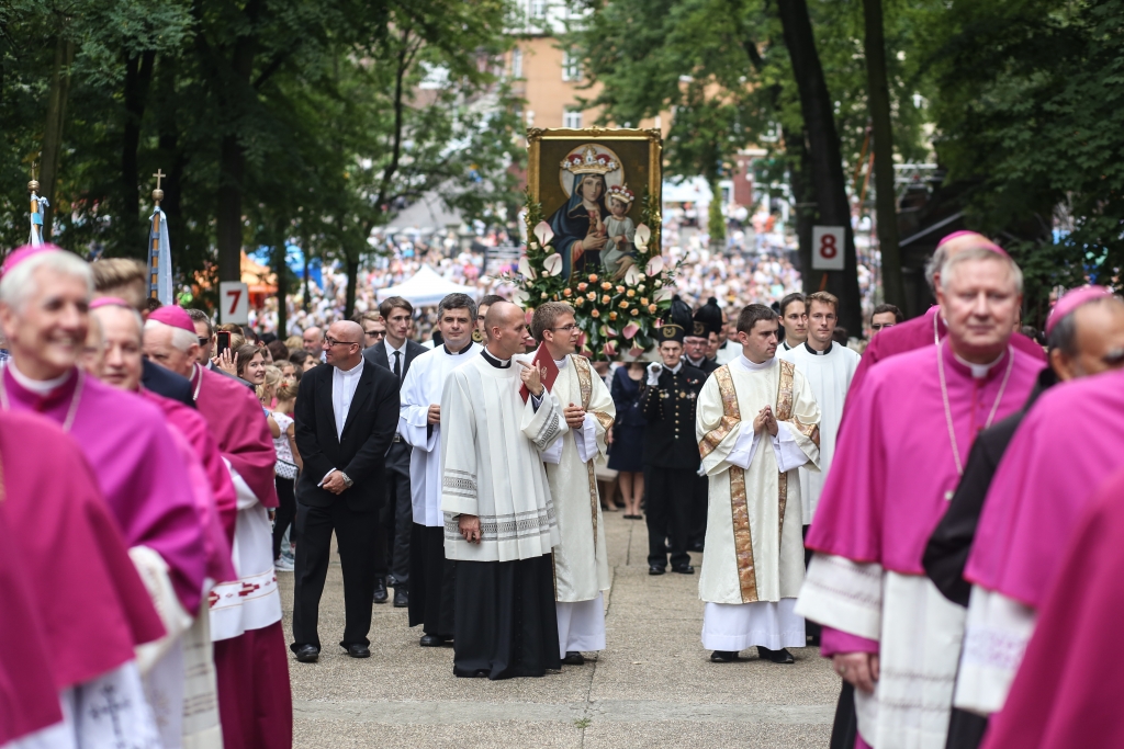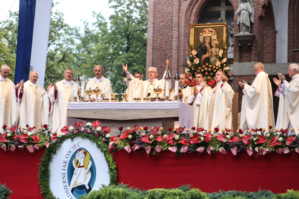 Bożej Piekarskiej na Kalwarię, gdzie mszę rozpoczął arcybiskup Wiktor
