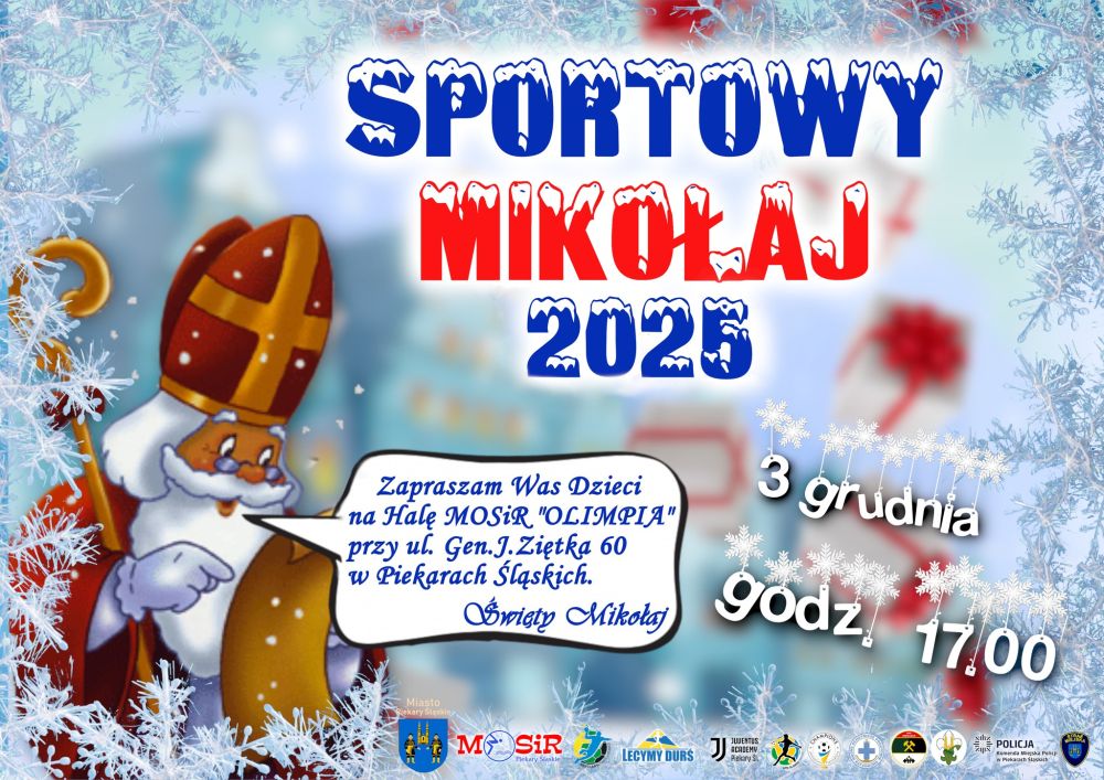 W środę 3 grudnia 2025 roku o godzinie 17.00 w hali sportowej MOSiR „Olimpia” przy ul. Ziętka 60 odbędzie się „Sportowy Mikołaj 2025”. W zabawie mogą wziąć udział dzieci w wieku od 4 do 12 lat, jednak wyłącznie po okazaniu bezpłatnej wejściówki, którą można odebrać w siedzibie MOSiR-u przy ul. Olimpijskiej 3. Liczba miejsc jest ograniczona, a jedna osoba może pobrać maksymalnie dwie wejściówki.