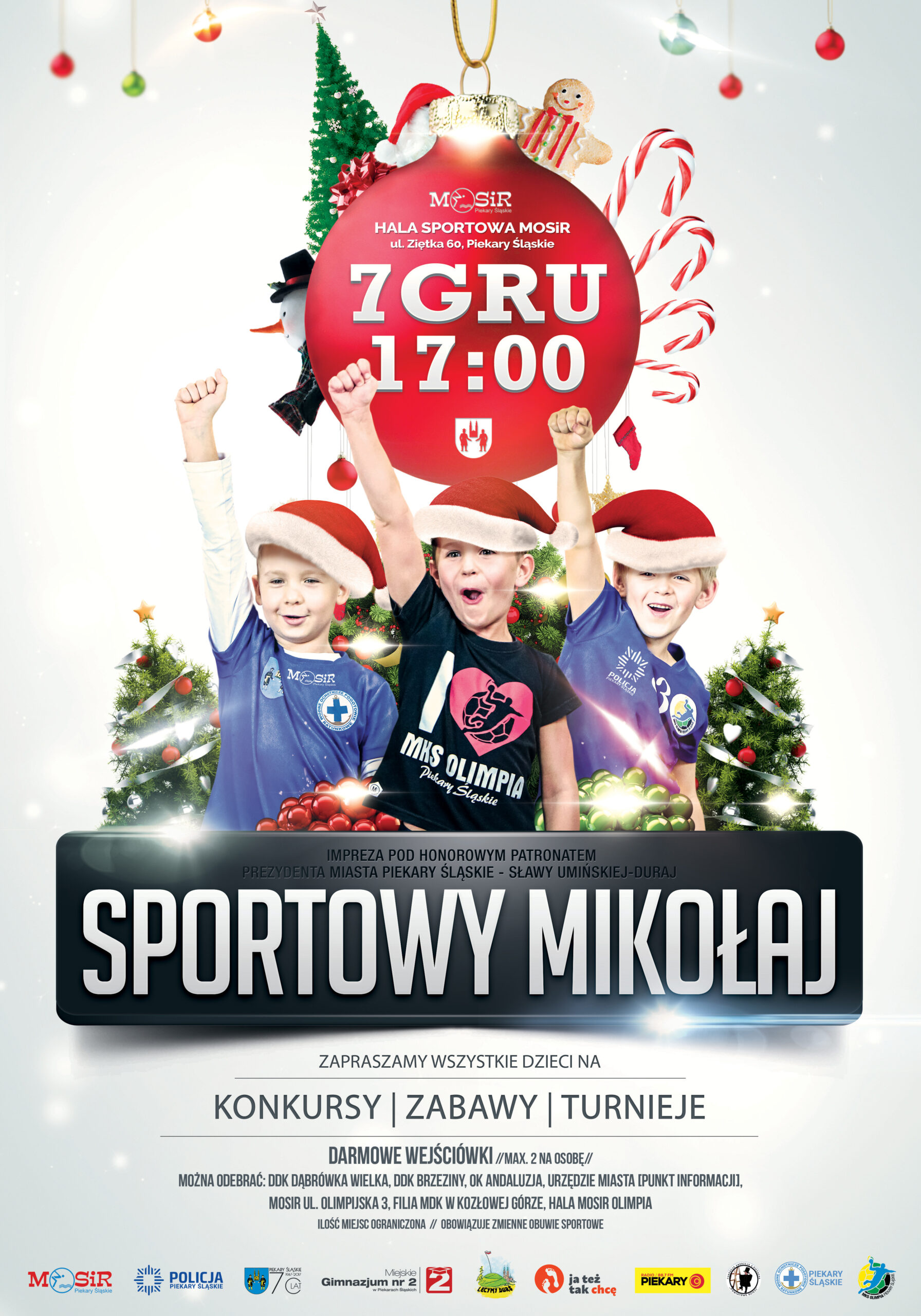 Sportowy Mikołaj rozpocznie się o godzinie 17.00 w hali sportowej Miejskiego Ośrodka Sportu i Rekreacji przy ulicy Ziętka 60 w Piekarach Śląskich. W programie wiele zabaw i konkursów dla najmłodszych mieszkańców miasta.