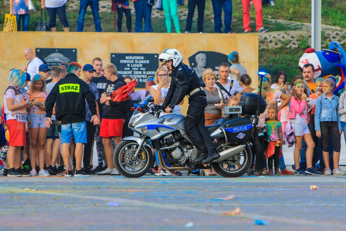 Elementem, na który zebrani czekali jednak najbardziej był festiwal kolorów. Przyciągnął on przede wszystkim młodzież, która świetnie bawiła się rzucając kolorowymi proszkami holi w rytm muzyki. – Tak kolorowo jak podczas tegorocznego pikniku rodzinnego jeszcze nie było! – mówi Aleksandra Zydyk – profilaktyk społeczny KMP w Piekarach Śląskich.